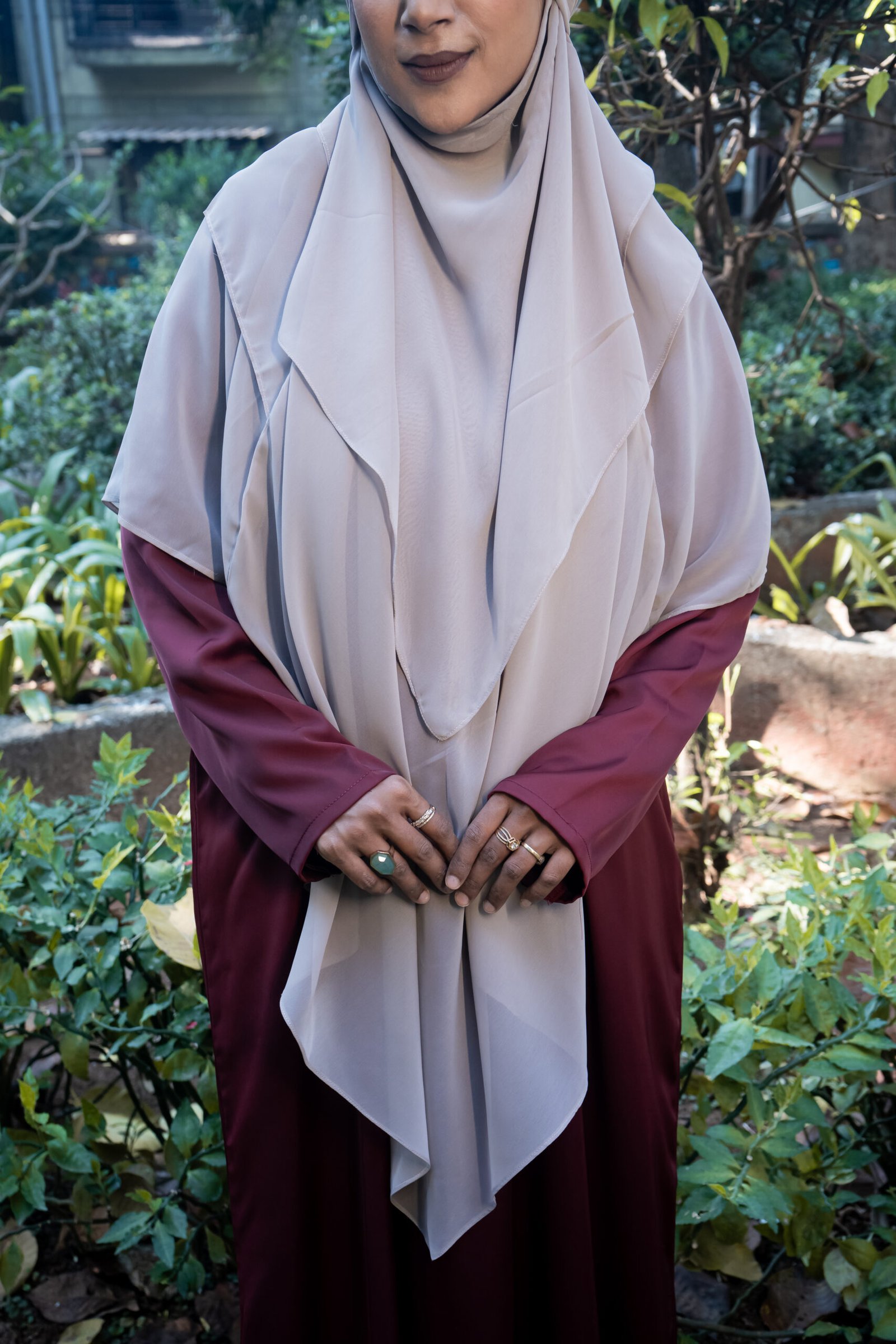 Grace meets modesty with our elegant Double Layer Khimar, designed to give a beautiful flow and fuller coverage. The layered design adds a soft, graceful drape that enhances the overall look while keeping it comfortable and modest.