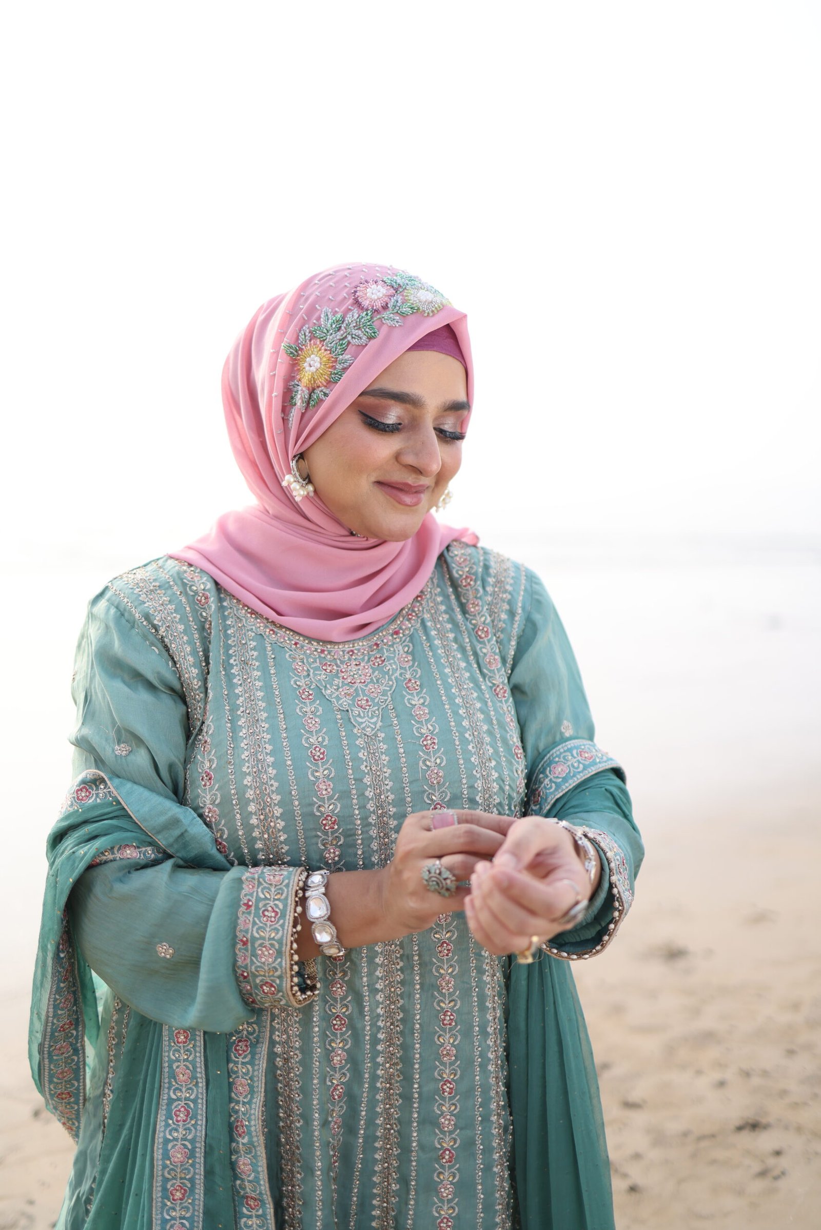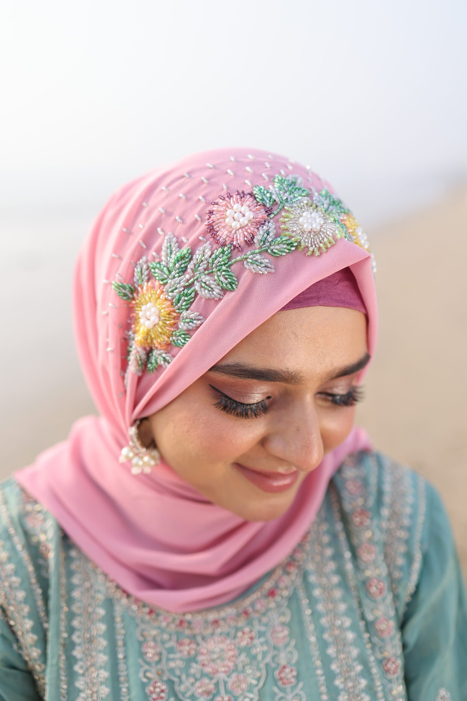 Crafted on premium chiffon, the hijab drapes softly and flows effortlessly, enhancing the overall bridal look while remaining lightweight and comfortable.